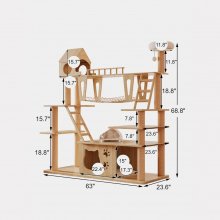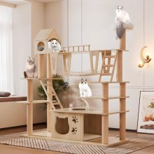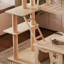 I've been on the hunt for a cat tower that could accommodate my two large Maine Coons and this one checks all the boxes. The durable wood construction is sturdy enough to withstand their rough play without any wob or tipping over, which gives me peace of mind. They absolutely love climbing up through the multiple tiers and scratching posts integrated into the design. Not only does this keep them entertained for hours on end but also our furniture from their claws! Plus, they love curling up in the cozy hammocks for nap times - sometimes they even prefer sleeping there over their own beds! All in all, an excellent purchase.