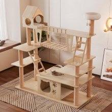 Our large feline buddy has found his new favorite hangout. This tower, let me tell ya, it's like was custom made just for him! It fits him so perfectly that you'd he had a say in its. Now about the construction of this bad. It’s all durable wood and I mean sturdy as heck. You know how cats can be, right? They love to scratch and claw at things but this tower isn't showing any signs of wear or tear despite our cat's best efforts. He goes ham on it daily but the tower is holding up like a champ! And don't even get me started on its longevity potential. We're talking years here folks, not months! Given how well-built this thing is, I'm pretty sure we'll still have it around when our kitty starts getting grey whiskers. It's rare to find something these days that doesn’t fall apart after a few uses but hey, looks like we hit the jackpot with this one! The craftsmanship really shines through every inch of this piece – from the way each level is perfectly spaced for easy climbing to how smoothly finished every edge is - ensuring no nasty splinters for your furry friend.