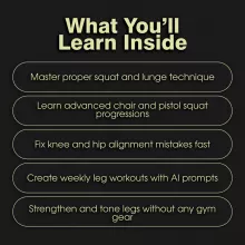 Love this leg workout guide! It's perfect for at-home exercises and doesn't need any fancy gym equipment. The best part? The AI-powered workout prompts keep me motivated and consistent. It's like having a personal trainer, but without the cost!