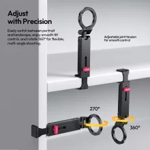 Whether you’re filming a vlog, going live, taking family photos, or working hands-free at your desk, this mount delivers dependable stability and unlimited viewing angles. Its smooth 360° rotation makes switching from portrait to landscape effortless.