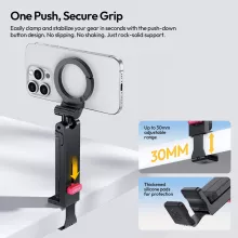 This compact stand is built from lightweight yet durable materials, combining plastic, silicone, and a powerful magnetic system for a firm, wobble-free hold. It folds down small for easy carrying and extends up to 7.4 inches when you need extra height. At only 3.9 ounces, it’s light enough for travel and steady enough for serious content creation.