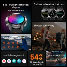 Meet the ultimate companion for your active lifestyle. This military-inspired outdoor sports smartwatch is built for movement, exploration, and everyday performance. With a crisp 1.46-inch round HD display, built-in GPS, and a fully waterproof design, it gives you reliable tracking and clear visibility whether you’re hiking rugged trails, training at the gym, or navigating your day. What makes it special? It blends toughness, smart technology, and advanced wellness monitoring into one sleek device that works for both men and women.