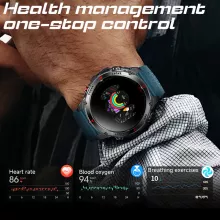 This smartwatch is packed with essential features designed to support your health and keep you connected. Track your heart rate, blood oxygen, sleep, and even stress levels in real time. With over 100 sports modes, it helps you get the most out of every workout. Thanks to Bluetooth calling, message reminders, weather updates, and remote photo control, it doubles as a convenient daily assistant. Whether you’re navigating with the built-in compass, checking altitude and atmospheric pressure on a mountain trail, or monitoring your steps and calories during everyday routines, this watch is ready for anything.