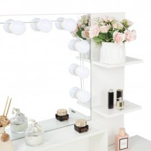 This vanity isn’t just a piece of furniture but a statement of style. It’s not only a space to prepare yourself for the day but also an addition that enhances your decor. The sleek, modern design, combined with functional storage and adjustable settings, makes it an indispensable part of your daily routine. Its capability to transform from a full vanity to a straightforward desk is ideal for adapting to your changing needs and spaces.