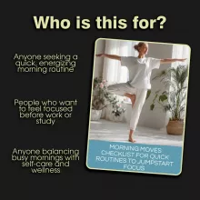 • Quick & Easy – A complete energizing routine you can finish in under 10 minutes.