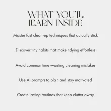This isn't just a cleaning guide; it's an understanding friend who doesn't judge but understands your messy habits and helps you overcome them. It offers real-life examples that make you feel seen rather than judged. And what's more? The bonus AI section is like having your own personal assistant to help with effortless tidying and planning.