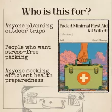 Unlike generic checklists, Pack a Minimal First Aid Kit with AI combines minimalist principles with AI technology to create a highly personalized and practical solution. It’s not just a static list – it’s an interactive, adaptable strategy that empowers you to optimize your kit efficiently, safely, and intelligently.