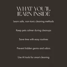 This eBook is for pet owners who want to create a healthier, cleaner environment without exposing their pets to harmful chemicals. It’s ideal for cat and dog owners, new pet parents, or anyone seeking tips for cleaning pet areas safely while using smart and sustainable methods.