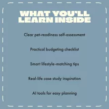 - Chapter 4: Next Steps and Smart Planning – Create a pet budget, explore fostering, and use AI tools to find your perfect match.