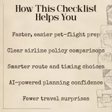 Unlike generic pet travel guides, the Paws-Up Checklist blends practical airline prep with modern AI strategies. You don’t just learn what to check—you learn how to use AI to find the easiest, most pet-friendly flights available.