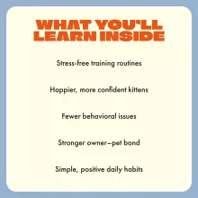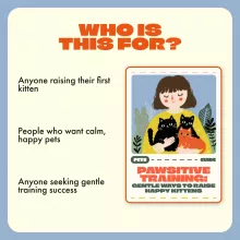• Teaches you how to train kittens gently using science-backed, positive reinforcement methods.