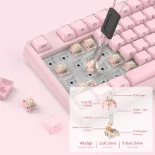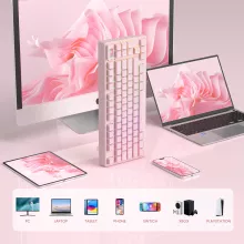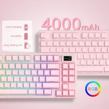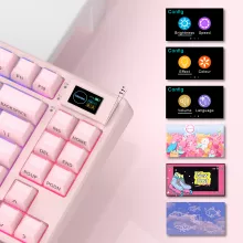 Step into a world where performance meets personality. This pink wireless gaming keyboard is designed for players and creators who want smooth mechanics, vibrant lighting, and a touch of flair on their desk. With its smart OLED display, ergonomic tilt, and soft gasket-mounted feel, this compact 75% keyboard is built to elevate your setup whether you’re working, gaming, or multitasking across devices.