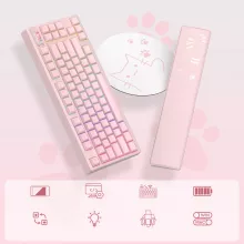 At the heart of this keyboard is a colorful multimedia OLED display that shows your time, connection mode, battery level, and even custom GIFs—adding both convenience and fun to your workflow. Its 11° angled screen sits perfectly within your natural line of sight. The included themed wrist rest and matching mouse pad create a cohesive look and provide comfortable support during long sessions.