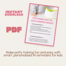 Transform your child’s potty training experience with Potty Training Made Fun: Your AI Reminder Checklist — a creative, easy-to-follow digital guide that combines technology, play, and positive reinforcement. Designed for modern parents, this digital download turns routine potty training into an engaging, stress-free adventure using smart AI reminders your child will actually love.