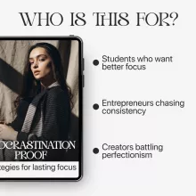 If you struggle with staying focused like I did then get yourself a copy of this eBook right away! Its practical approach towards tackling procrastination has truly transformed the way I work ✨