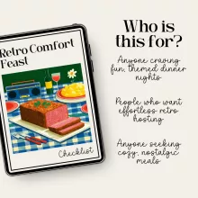Unlike generic dinner-planning guides, Retro Comfort Feast blends practical steps with curated inspiration, combining menu creation, décor ideas, music suggestions, and hosting tips into one cohesive checklist. It ensures your retro dinner party feels intentional, polished, and full of heart.