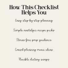 This printable checklist is simply amazing! It made my retro-themed dinner party so much easier to plan. I loved all the comfort food recommendations - they were such a hit among my guests!