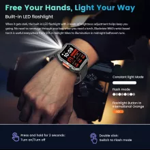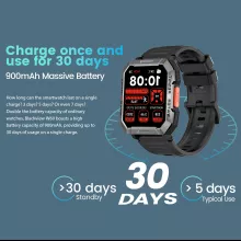 What makes this smartwatch truly special is its combination of rugged strength and practical features. It’s powered by an energy-efficient processor and a high-capacity 900 mAh battery that keeps you going for days. The built-in emergency lighting option adds an extra layer of safety during night walks, hikes, or unexpected power outages. It’s the perfect companion for outdoor lovers, travelers, and anyone who wants a smartwatch that’s both tough and smart.