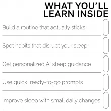 - Chapter 3: AI as Your Sleep Sidekick – Learn how to use AI for personalized suggestions, including prompt examples for ChatGPT & MidJourney, plus free tools you can try immediately.