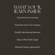 - Time-saving tips — Learn how to simplify maintenance and enjoy a stress-free, stylish closet.