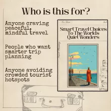 This ebook is perfect for solo travelers, couples, digital nomads, slow travelers, and anyone who wants richer, calmer travel experiences. If you love discovering authentic places before they become crowded—or simply want smarter planning tools—this guide is for you.