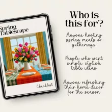 Unlike generic decor guides, the Spring Tablescape Checklist combines expert-level styling tips with approachable, step-by-step direction. It’s thoughtfully designed to help you create a visually stunning table that feels warm, intentional, and personalized—no design experience required.