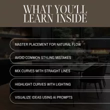 Styling with Curved Furniture is not just a checklist or a visual gallery—it’s a structured, educational resource created by a professional with a deep understanding of spatial flow and interior balance. It even includes an AI visualization prompt to help you see your space before making changes.