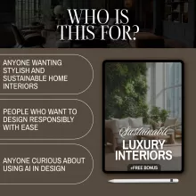 Unlike generic design resources, the Sustainable Luxury Interiors Guide goes beyond theory by combining practical insights with cutting-edge AI solutions. Whether you’re redesigning your home, working on client projects, or simply exploring sustainable living, this guide equips you with tools, materials, and ideas that bring sustainable luxury to life. It’s a perfect balance of modern design expertise and eco-conscious strategies, making it a unique resource you won’t find elsewhere.