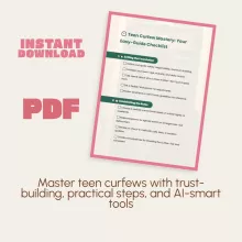 Take the stress out of setting boundaries and start building trust today. Download Teen Curfew Mastery: Your Easy-Guide Checklist now and make your curfew conversations easier, smarter, and more effective!