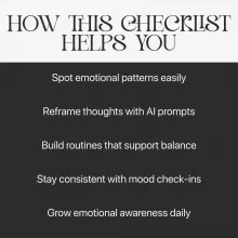 This checklist is ideal for anyone wanting to better understand their inner world—whether you’re working on emotional regulation, self-awareness, or personal growth. It’s especially helpful for those who want to combine mindfulness with technology for practical, real-world insights into how they feel and why.