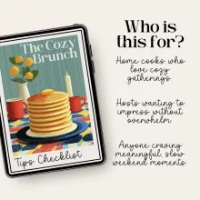 This checklist is perfect for anyone who loves the cozy side of hosting — from home cooks and food lovers to creative souls who enjoy styling beautiful, heartwarming moments. Whether you’re throwing a weekend brunch, celebrating a holiday morning, or just treating yourself, The Cozy Brunch Tips Checklist helps you turn simple meals into meaningful experiences.
