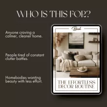 The Effortless Décor Routine is more than just an eBook—it’s your roadmap to a calmer, cleaner, and more inspired home. Download your copy today and start transforming your surroundings into a clutter-free sanctuary that truly feels like you. Simplify, refresh, and fall in love with your space again!