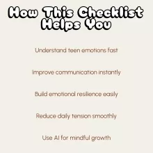 I was at my wit's end dealing with my teenager’s mood swings until I found this checklist. Now, I feel more confident and less stressed about parenting.