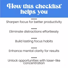 If you need help focusing or want to boost your productivity, get this checklist ASAP! The tips are actionable and effective - they've transformed how I approach tasks completely.