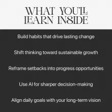 • Build habits that last: Learn small, high-impact actions that compound over time.
