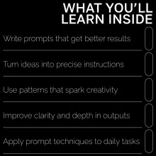 - Chapter 1: Learn the core patterns behind high-impact prompts that guide AI effectively.