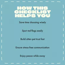 Don’t leave your pet’s comfort and safety to chance. Download The Purr-fect Pet Sitter Checklist: Find Your Pet’s Next Best Friend today and discover how to choose a pet sitter who’ll love and care for your pet just like you do. Bring home peace of mind—one paw at a time!