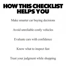 I was completely clueless about what to look for in a car before I found this checklist. Now I feel confident and prepared!