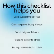 Unlike generic affirmation lists, this checklist focuses on realistic self-talk you can believe. It’s interactive, practical, and built for real life—making how to create positive self talk feel achievable, not overwhelming.