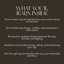 I've been struggling with finding the right rug for my studio apartment, and this eBook has been an absolute lifesaver! The detailed tips on choosing the perfect size and style have made the process so much easier. Plus, it's digital format means expert advice is instantly available whenever I need it. It’s a must-have resource for anyone looking to elevate their space without spending a fortune or making design mistakes