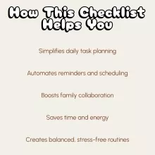 🙌 This checklist has been a lifesaver for my busy family. Automating routine chores and reminders really saves time!