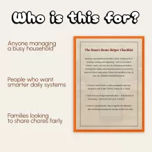 Busy parents, smart home enthusiasts, and anyone looking to make daily life smoother will find this checklist invaluable. Whether you’re juggling work, family, or endless to-do lists, The Smart Home Helper Checklist helps you reclaim your time while keeping your home organized and stress-free.