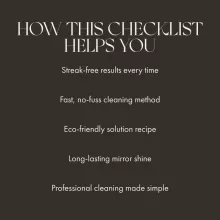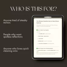 As someone who takes pride in maintaining a clean home, I can't recommend this eBook enough. It's not just about cleaning mirrors - it's about achieving that flawless streak-free shine every time. Plus, being able to print out the checklist is incredibly handy for keeping track of my progress.