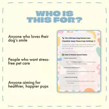 Unlike generic pet care guides, this digital checklist is thoughtfully organized to help you build consistent habits and monitor your dog’s dental health proactively. It’s interactive, engaging, and designed to help every dog owner feel confident about their dog’s oral hygiene routine.