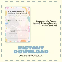 This checklist is ideal for dog owners who care deeply about their pet’s well-being and want to ensure their dog’s mouth stays clean and healthy. Whether you’re a new puppy parent or a seasoned dog lover, this guide makes dental care for dogs manageable, affordable, and enjoyable.