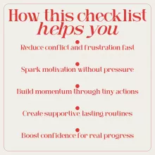 - Reduces conflict, nagging, and emotional burnout