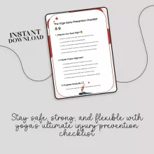 Empower your yoga journey with knowledge, mindfulness, and safety. Download The Yoga Injury-Prevention Checklist now and transform your routine into a confident, balanced practice. Your safest, strongest self awaits—start today!