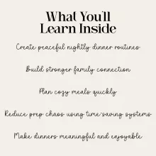 - Feel calmer before, during, and after dinner with simple, repeatable systems