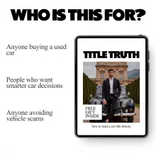 Don’t let a cheap price blind you to expensive problems. Download Title Truth today and give yourself the knowledge to make smart, confident decisions every time you shop for a used car. This is a digital download, so you can start learning immediately.