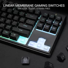 Experience effortless speed and precision with this compact TKL gaming keyboard designed to elevate every match, mission, and work session. Built with smooth linear mechanical-feel switches, it delivers quick, silent, and consistent keystrokes that help you stay ahead in fast-paced gameplay. Its 80 percent layout frees up valuable desk space, giving your mouse room to move naturally—perfect for players who need full control without clutter.